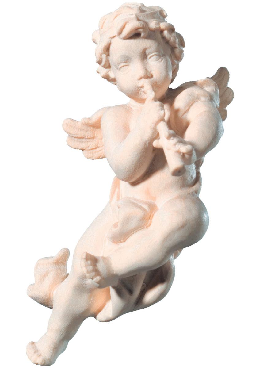 Delicato angioletto scolpito da puttino musicista volante con clarinetto, angeli legno fatti a mano