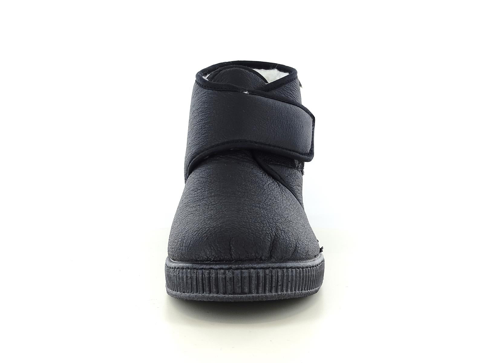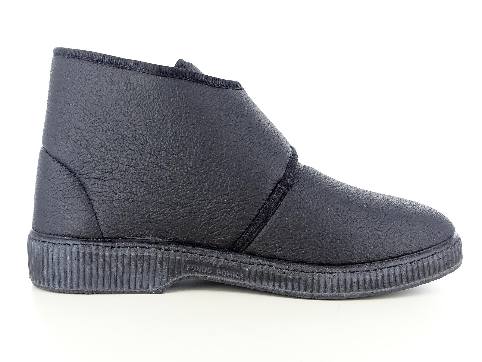 pantofola alta realizzata interamente in Italia. Il fondo antiscivolo in gomma è flessibile e renderà sicuri tutti i tuoi passi. La pantofola è realizzata in ecopelle e foderata interamente con lana a pelo vivo. Il velcro lungo e robusto di cui è dotata rende il prodotto adattabile a tutti i piedi. L`altezza del fondo è di cm 3.