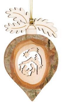 Addobbo Goccia Natività da appendere con sacra famiglia in legno in corteccia - Dolfi idee San Valentino