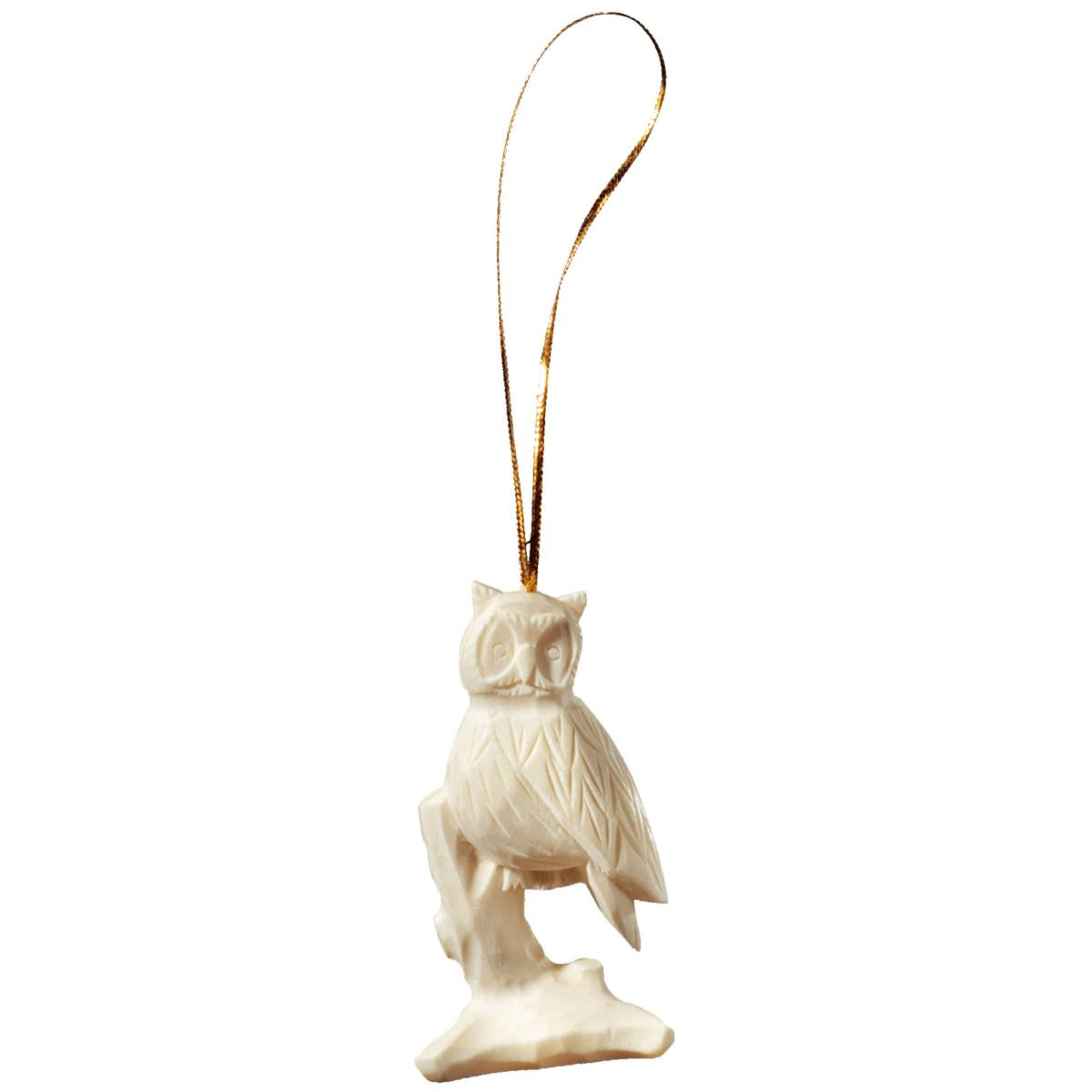 Gufo scolpito in legno di tiglio da appendere ; fa parte della collezione di Gufi, Gufetti e civette in legno della Val Gardena.