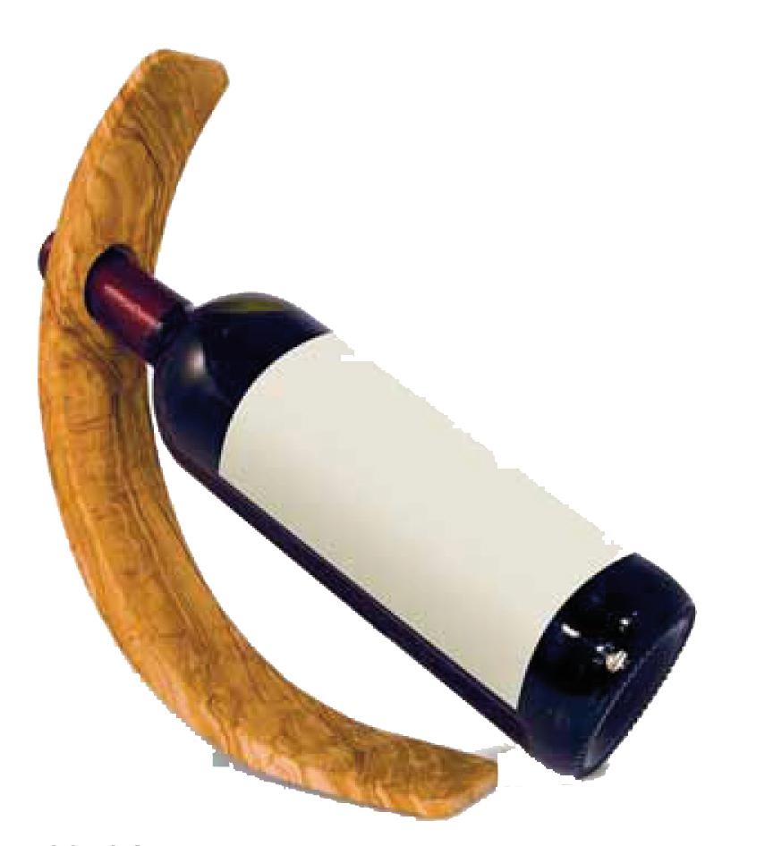 Supporto per bottiglia di vino Leonardo curvo - Dolfi idee regalo in ulivo intagliate in legno