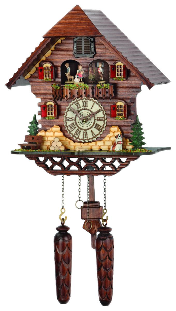 Questo Orologio con Cucù da parete è molto bello nello stile classico tradizionale della Foresta nera, I colori intensi del marrone, sono piacevoli e risaltano i bambini ballerini che ruotano al suonare di ogni ora o ogni mezz'ora, assieme al cuculo che uscendo falla finestrella fischietta felicemente. nel cortile della casetta troviamo di guardia il cane san Bernardo, vigile ad ogni mossa dei passanti. Il pendolo e le pigne sono scolpiti in legno di tiglio e si abbinano con lo stesso colore della casetta. Il meccanismo è al quarzo ed è molto pratico perché in questo modo non c'è la necessità di caricare il cucù a mano, tirando le catenelle, come sui cucù meccanici. Per attivarlo basta inserire 2 batterie AA e seguire le istruzioni allegate nella scatola, per fare funzionale l'orologio. Le melodie sono ben 12 una più carina dell’altra e ascoltandole, danno davvero una sensazione di serenità e di gioia.
