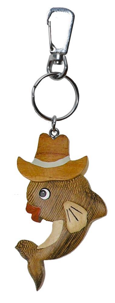 Portachiavi scolpito in legno con delfino col cappello, portachiavi con incisione
