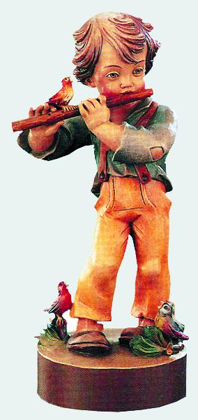 Ragazzo scolpito in legno che suona il flauto - 11.0 cm